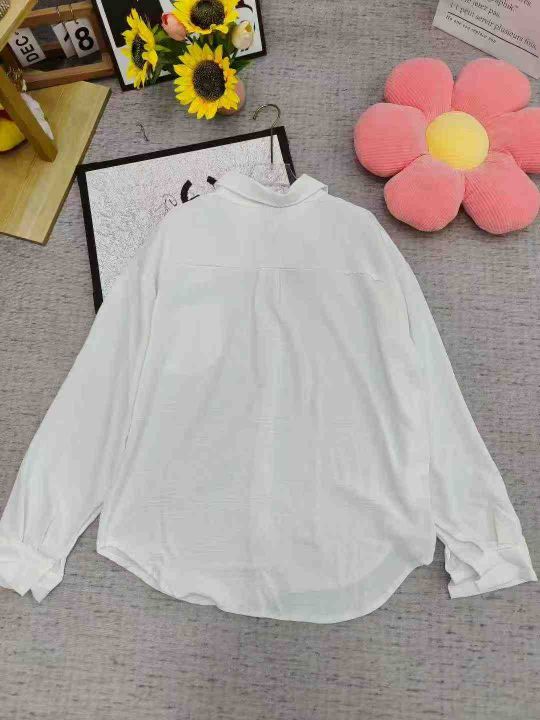 [發]女装高级感白色亚麻衬衫200件左右宽松薄款慵懒风...