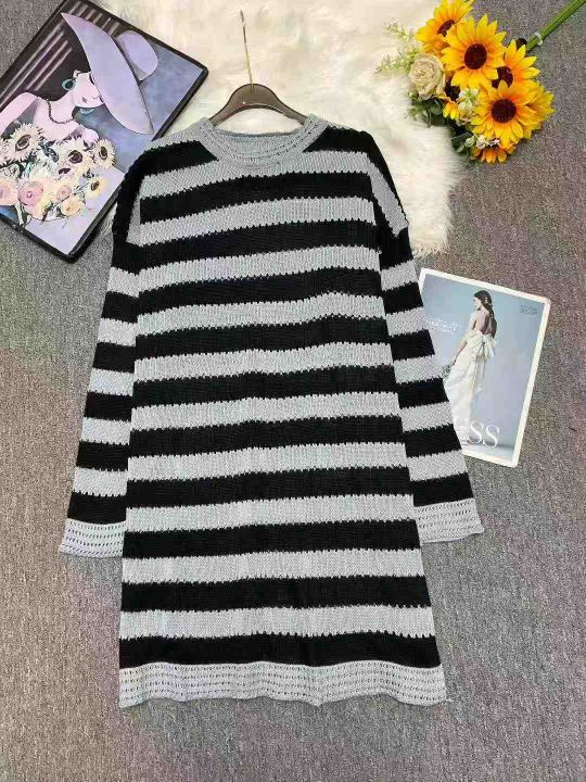 春秋新款韩系宽松百搭撞色条纹针织毛衣裙,独立包装,...
