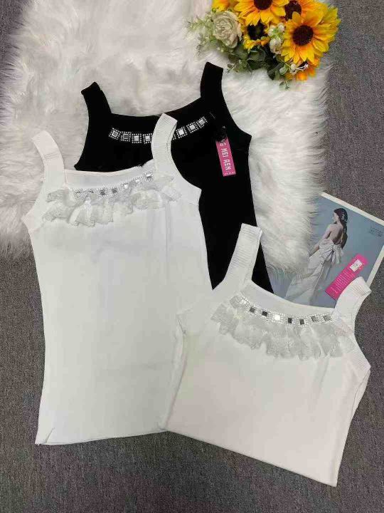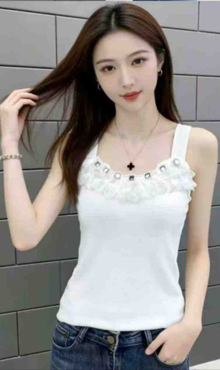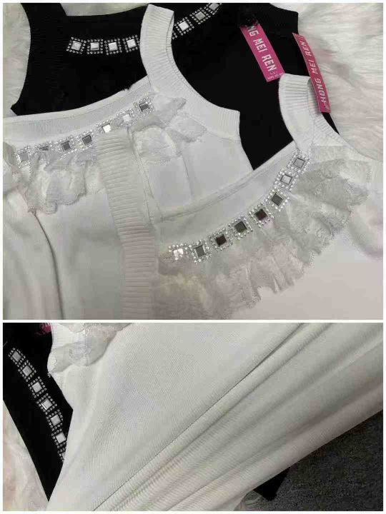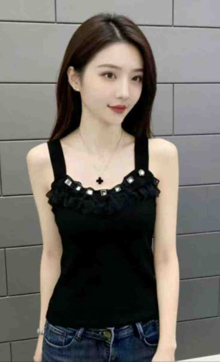 公司原单夏季新款重工烫钻针织吊带背心,独立包装带吊...