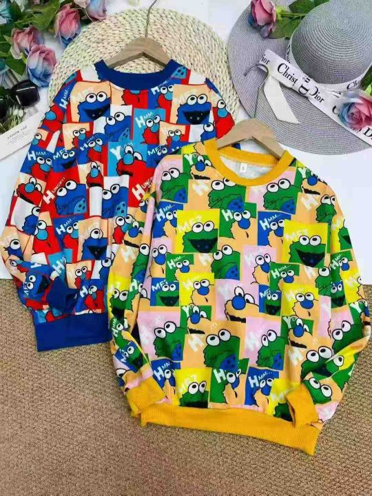 男女童满印芝麻街儿童卡通卫衣,总数量1849件,码数1-6(相当于100-150)有独立包装,全清2.9元,拿一半3.5元。 货号:1323