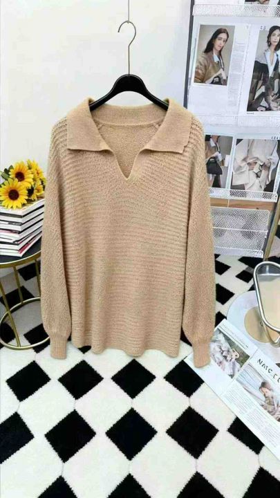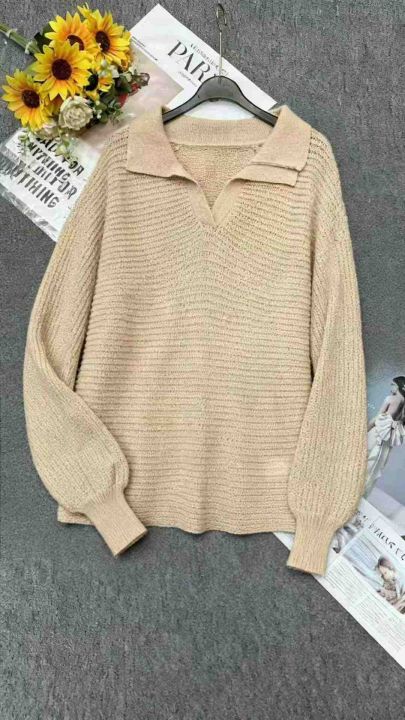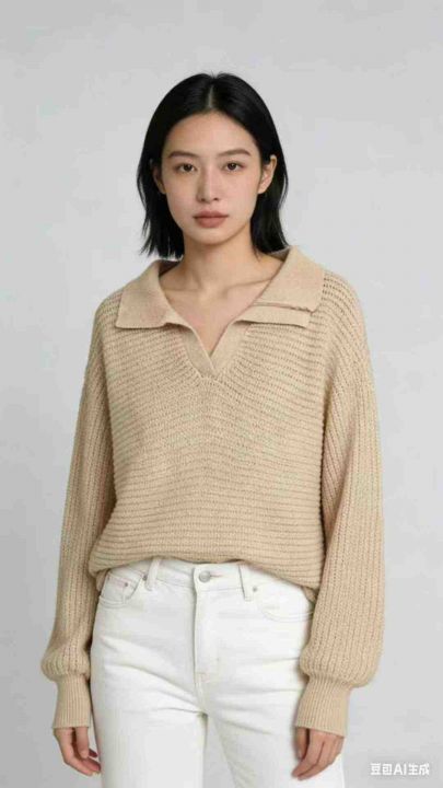 秋冬新款宽松打包粗针polo领套头毛衣,独立包装,均码...