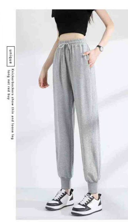 春秋新款宽松百搭松紧腰复合棉休闲束脚卫裤,独立包装...