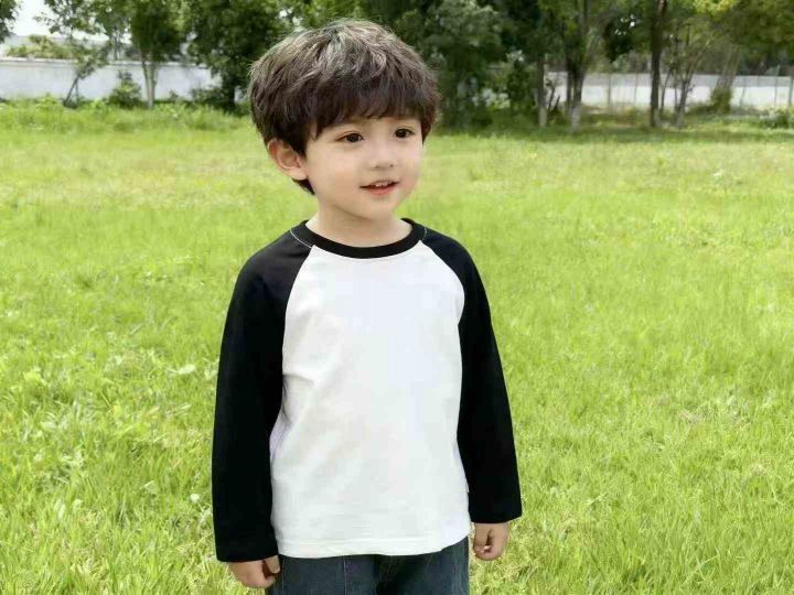 纯棉童装拼色长袖 数量500件左右 尺码110--160 后领包边 十件一包装 货品干净整齐。 货号:1323
