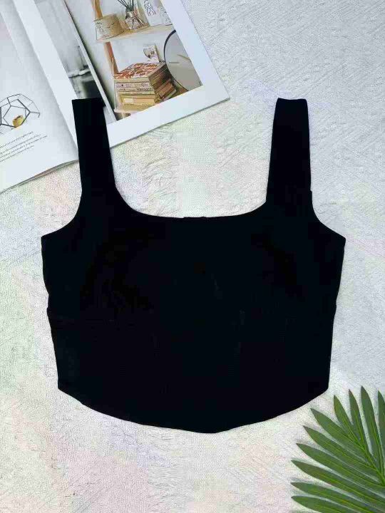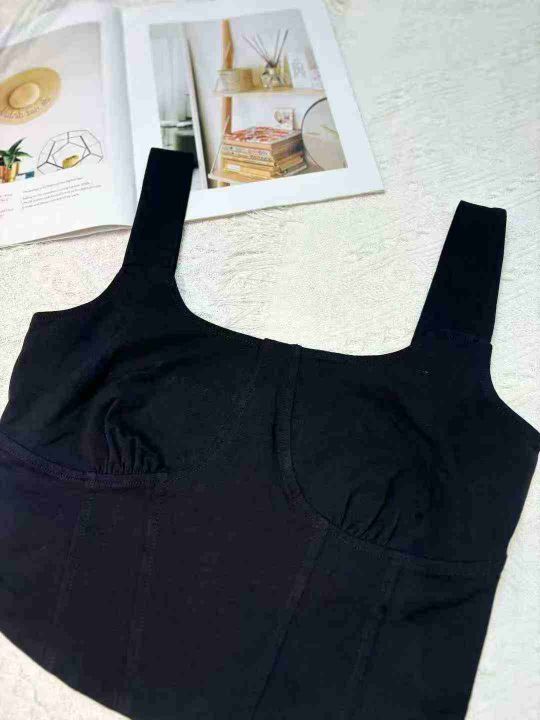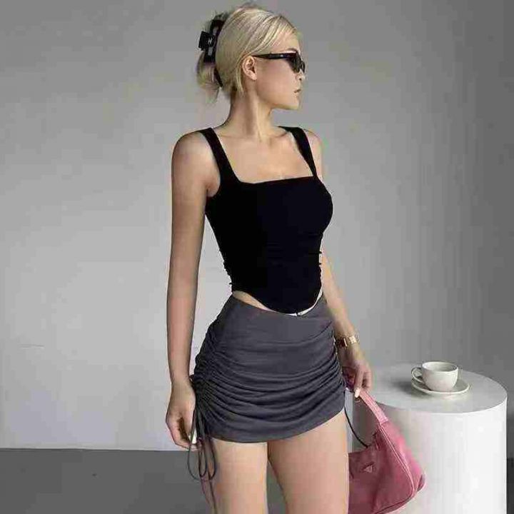 142件美式气质甜辣风低领露脐短款黑色吊带背心,纯棉...