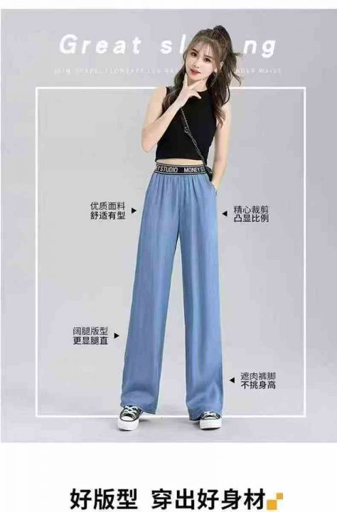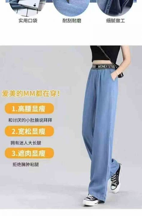 145条薄款天丝牛仔阔腿裤女夏新款高腰显瘦垂感宽松冰...