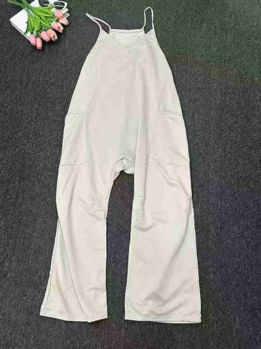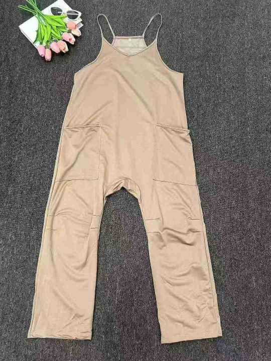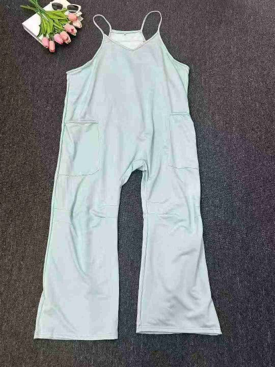 欧美大码V领胖MM浅绿色口袋宽松休闲吊带连体裤,独立包装,700件,S-2XL,全清6.8分货➕1。 货号:24862