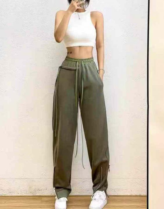 春秋新款宽松百搭网红复古美拉德高腰垂感直筒休闲阔腿裤,独立包装,码数M-...