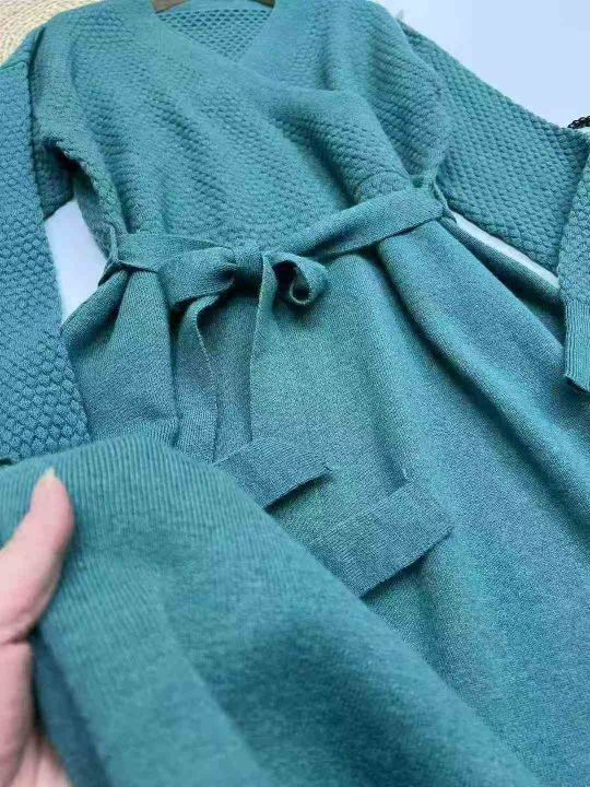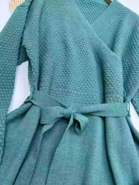高品质大码针织连衣裙,宽松大码版型,有腰带,数量158件,码数S-XL,单款绿色,原10件一独立包装