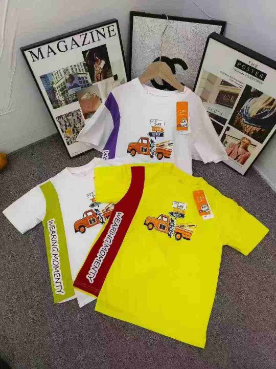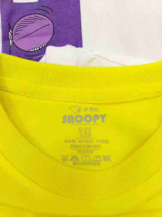 品牌童装新款潮牌百搭痞帅字母圆领T恤 数量3000件左右 尺码110--160 整款三个品牌 三个色 后领包边 独立包装带吊牌(大嘴猴、史努比、森马) 货品整洁质佳 100件起