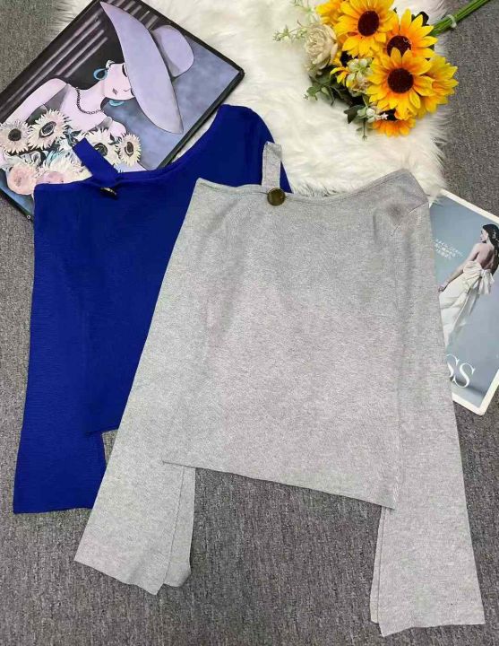 秋冬新款设计款单肩不对称时尚喇叭袖开叉针织套头毛衣,独立包装,均码面料柔软舒适弹力大,100件左右,全清5.9元超低价秒杀!
