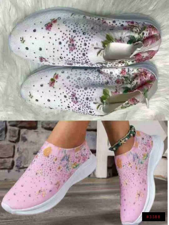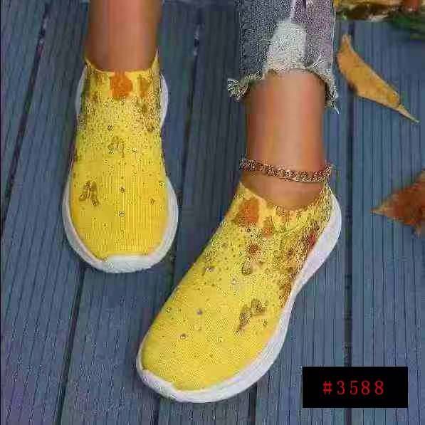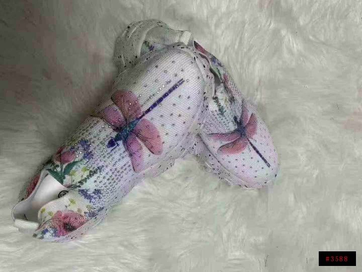 外贸大码男女鞋春季透气运动休闲鞋水钻彩虹闪亮飞织鞋...