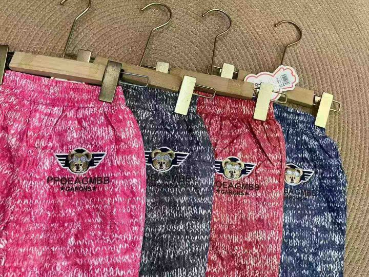1536件高品质叮当宝贝小熊刺绣儿童羽绒花小裤。面料轻柔,保暖舒适。品质非常好。6/8/10/12,6码相当于80码,裤长50CM左右。一扎4个码,全部原独立包装带吊牌。全清3.9。 货号:24862
