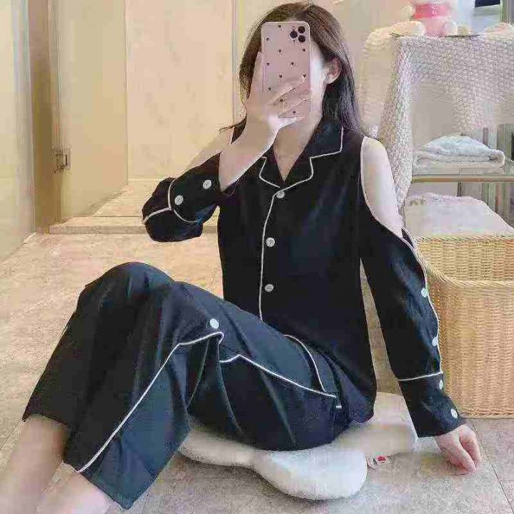 ① 网红爆款冰丝性感长袖长裤睡衣两件套装!整款两色,...