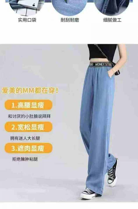 145条薄款天丝牛仔阔腿裤女夏新款高腰显瘦垂感宽松冰...