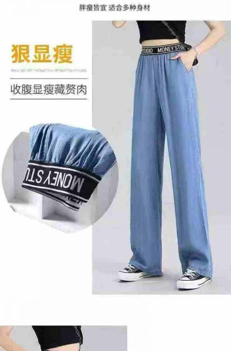 145条薄款天丝牛仔阔腿裤女夏新款高腰显瘦垂感宽松冰丝直筒拖地裤