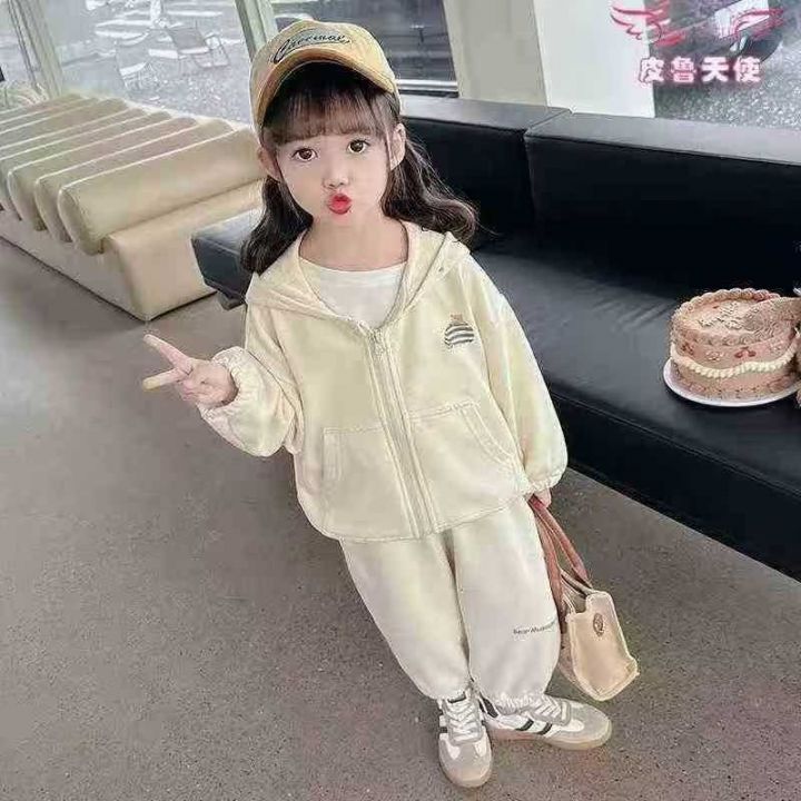 米妮哈鲁女童春秋季韩系卫衣套装2025新款女大童洋气上衣卫裤两件,其中连帽米色10套,数量130套,码数110-160,独立包装后领包边,全清10.8元
