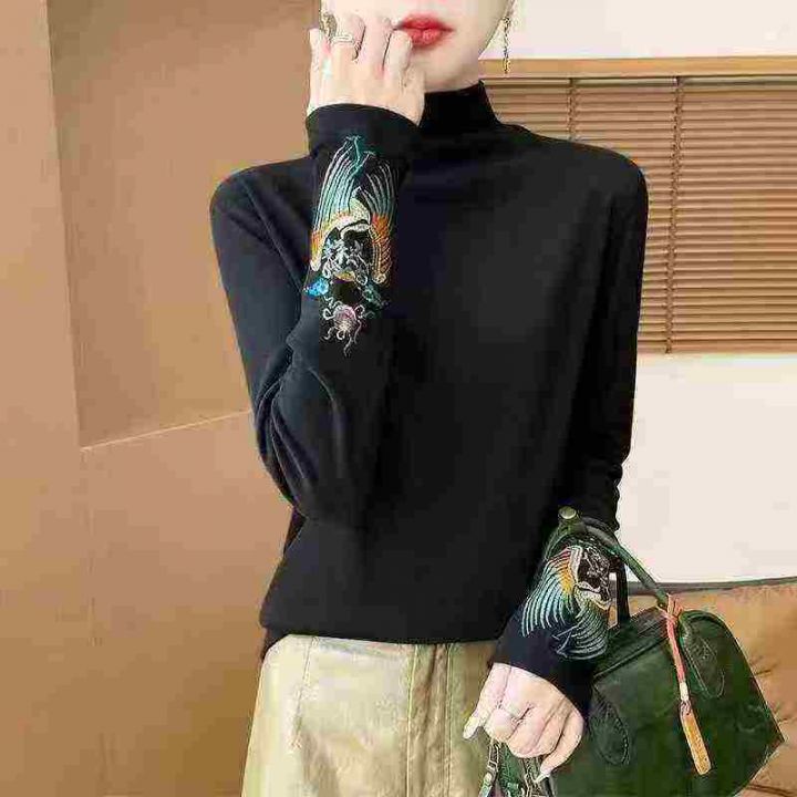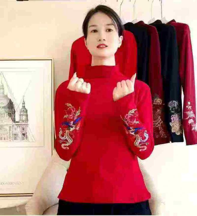 446件,秋冬新款德绒打底文艺复古刺绣百搭上衣民族中式高领保暖德绒长袖T恤,独立包装,码数M-3XL,全清5.8元,分货➕0.5