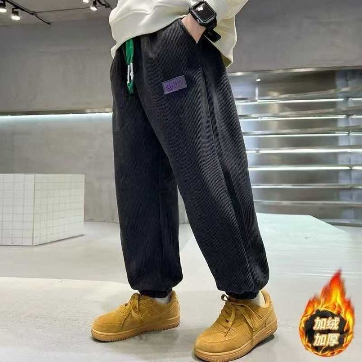 2025男童裤子秋冬款灯芯绒新款卫裤加绒加厚男孩中大童长裤潮,数量1360件,码数120-170,独立包装,货品干净厚实,无瑕疵。