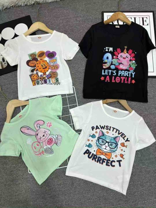 全清3.3元,60000件男女童短袖T恤,夏装新款卡通彩色卡通图案童装短袖T恤,花型大同小异一系列独立包装,码数90~160,分货➕0.5