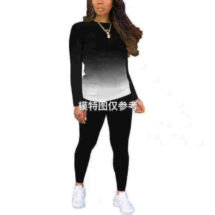 7.8清欧美女装爆款休闲渐变色两件套装 ,上衣两侧开衩设计,图片款,数量:...