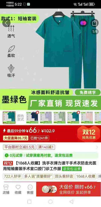 200套医用护士服套装,纯棉,2元一套。 货号:2...