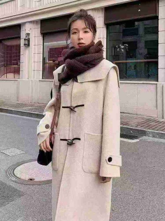 340件海军领毛呢外套女2025秋冬新款学院风中长款韩版宽松牛角扣呢大衣,码...