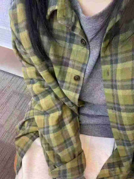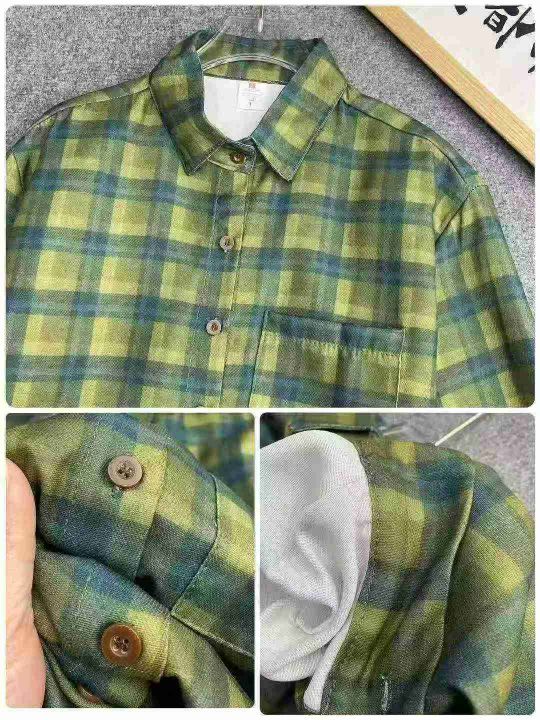 早春格子衬衫1434件9.5,宽松慵懒风,弧形下摆,复古...