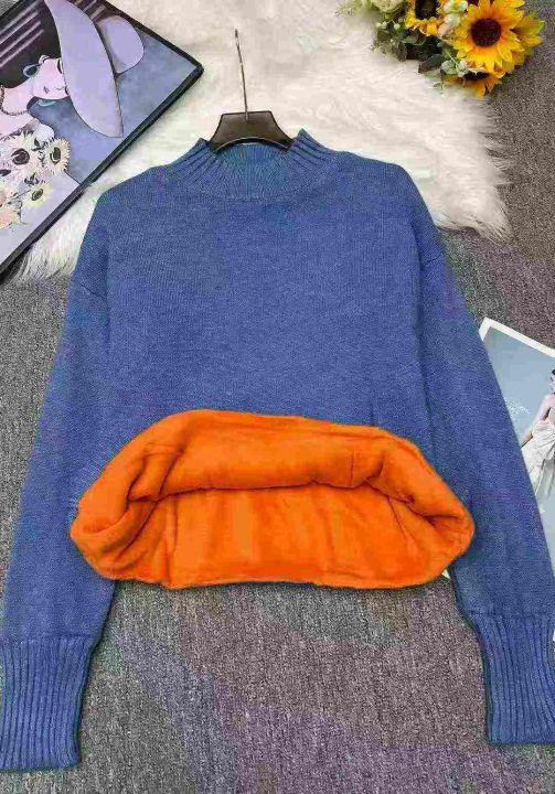冬季新款加绒加厚半高领包芯纱套头毛衣,独立包装,均...