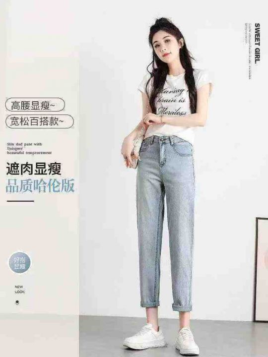 春秋新款高弹力洗水棉牛仔老爹哈伦裤,独立包装带腰卡...