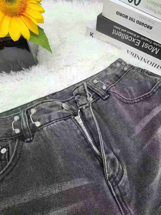 天猫下架女士新款做旧水洗猫须直筒阔腿牛仔裤1600条,...