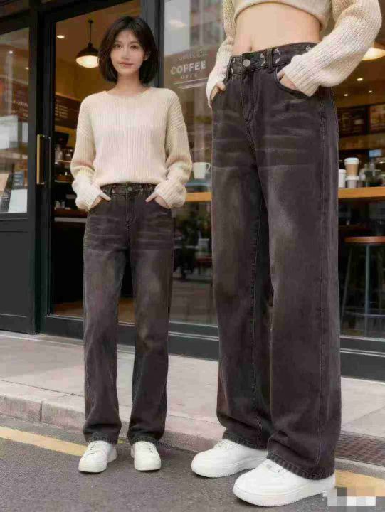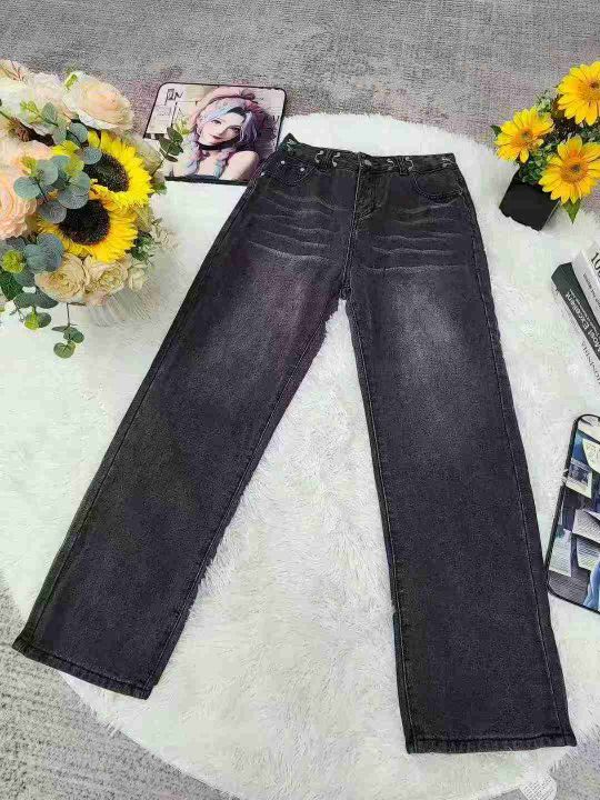 天猫下架女士新款做旧水洗猫须直筒阔腿牛仔裤1600条,...