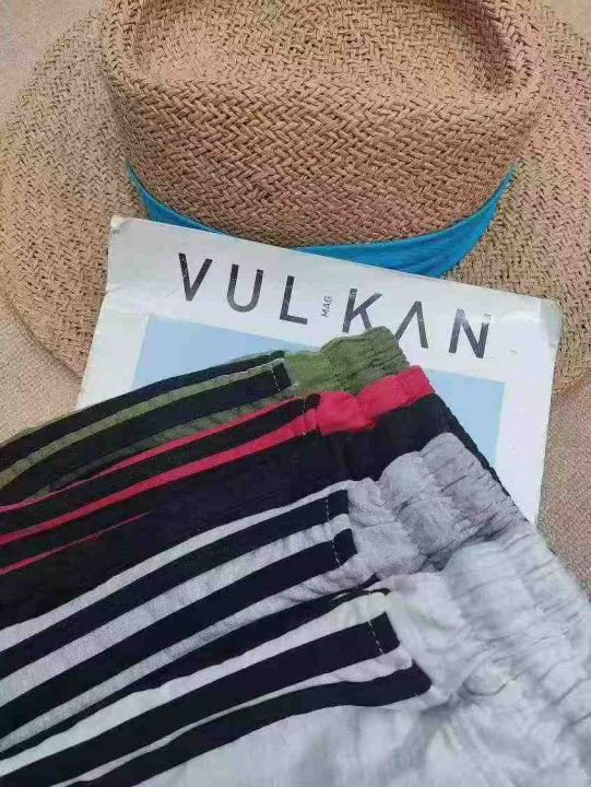 [月亮]:美式复古撞色杆条休闲辣妹棉质短裤