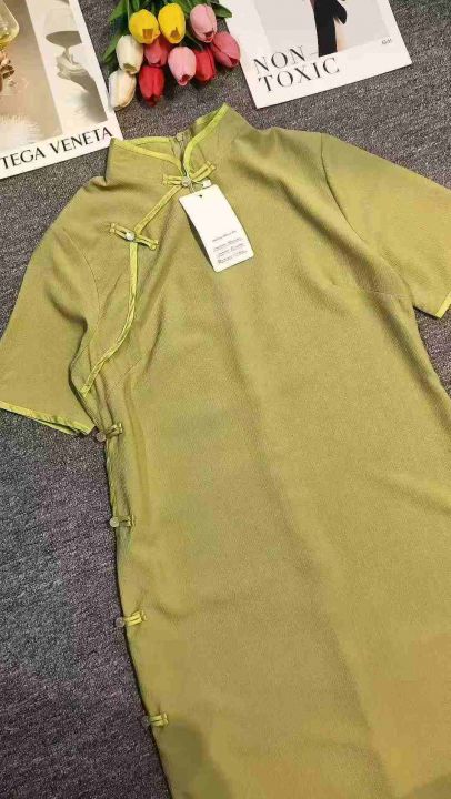 民国复古设计感半开襟长款旗袍女,[爱心]90件左右,码数S-2XL,穿70斤-140斤,万佳档口货,原包装️无瑕疵,实体店品质