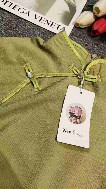 民国复古设计感半开襟长款旗袍女,[爱心]90件左右,码数S-2XL,穿70斤-140斤,万佳档口货,原包装️无瑕疵,实体店品质