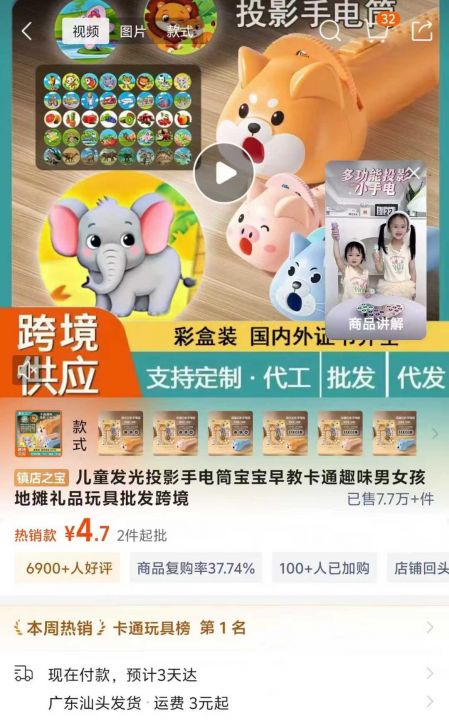 1000个发光投影手电筒早教儿童玩具,全清每个1.5元秒!
