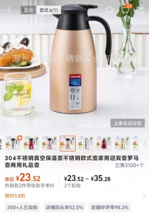 140个家用商用304不锈钢保温壶 容量2L,全清每个11元秒!