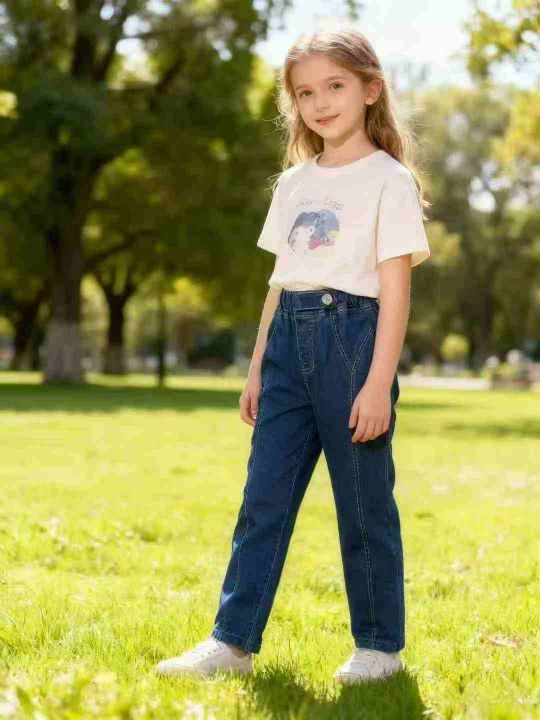 320件左右品牌女童弹力加绒牛仔裤,码数100-170,整款2个色,独立包装带吊牌