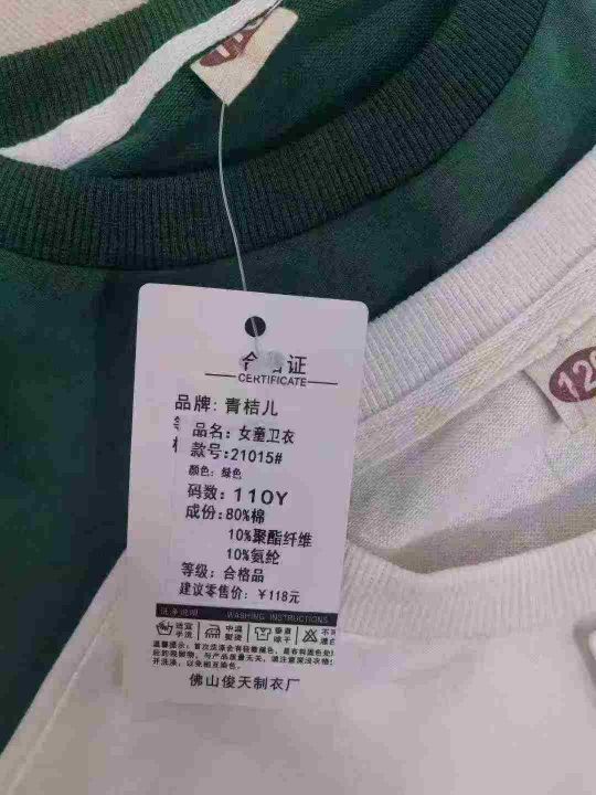 270件左右中大女童卫衣,整款2个色,码数140-150,后领包边,独立包装带吊牌