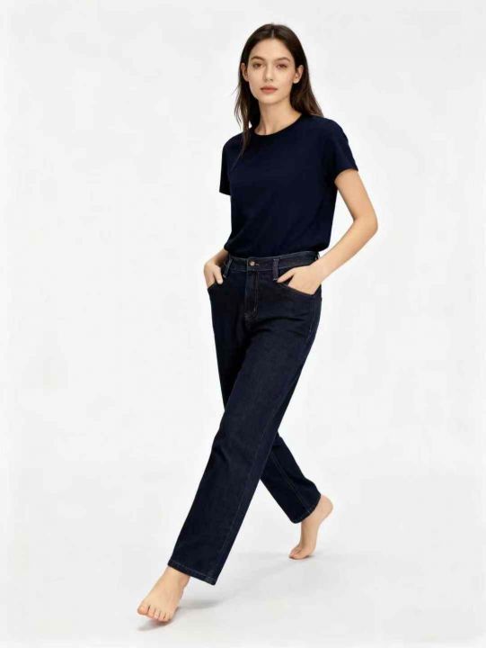 天猫下架冬季新款高腰松紧腰高弹力加绒直筒牛仔长裤,独立包装带吊牌,码数66-77-88相当于(L-XL-XXL)码,413件左右,全清11.8元超低价秒杀!