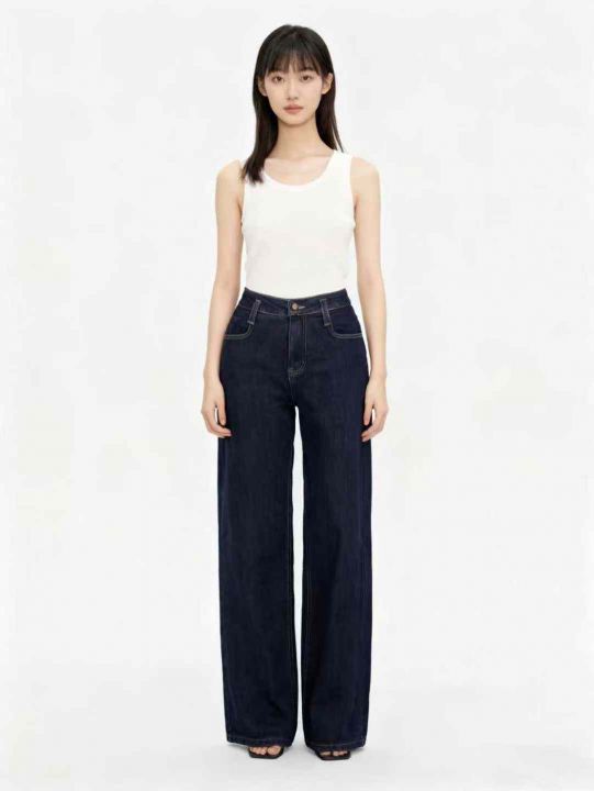 天猫下架冬季新款高腰松紧腰高弹力加绒直筒牛仔长裤,...