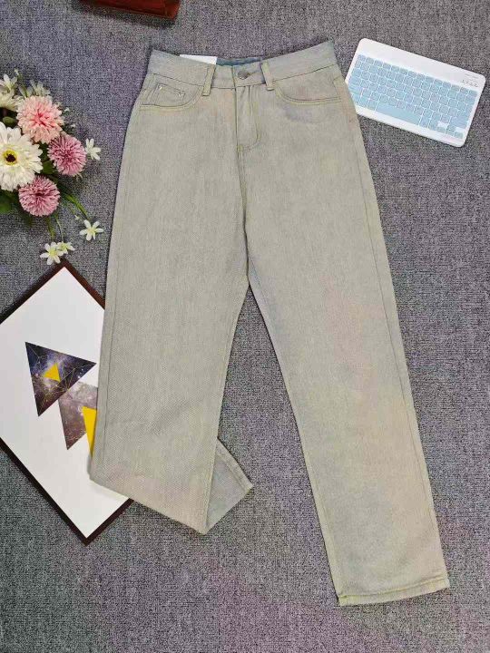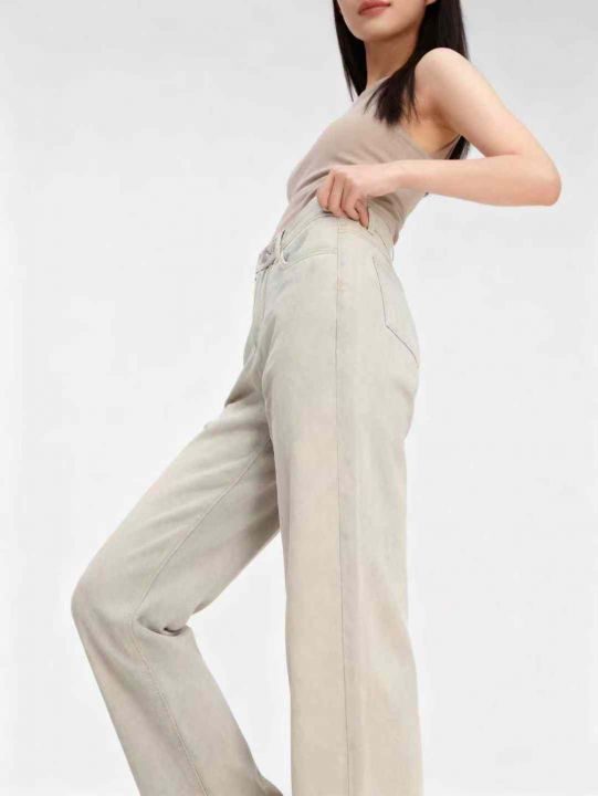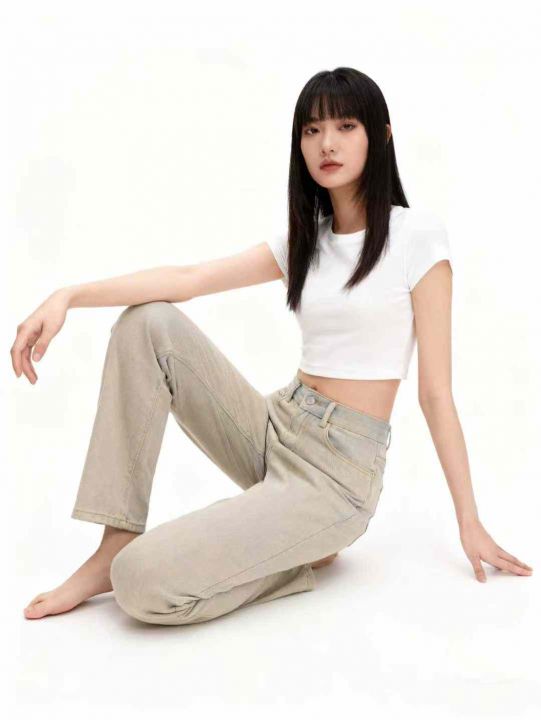 天猫下架美式复古黄泥色窄版直筒烟管牛仔裤,460件左...