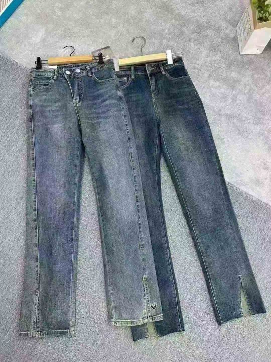 全清13.8开叉牛仔裤女高腰2025春秋新款修身显瘦高弹力...