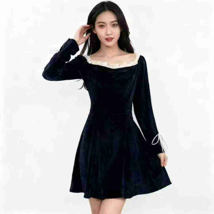 9.9清电商仓回收102件法式复古气质金丝绒淑女连衣裙,...