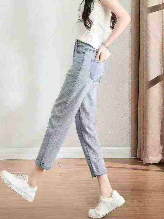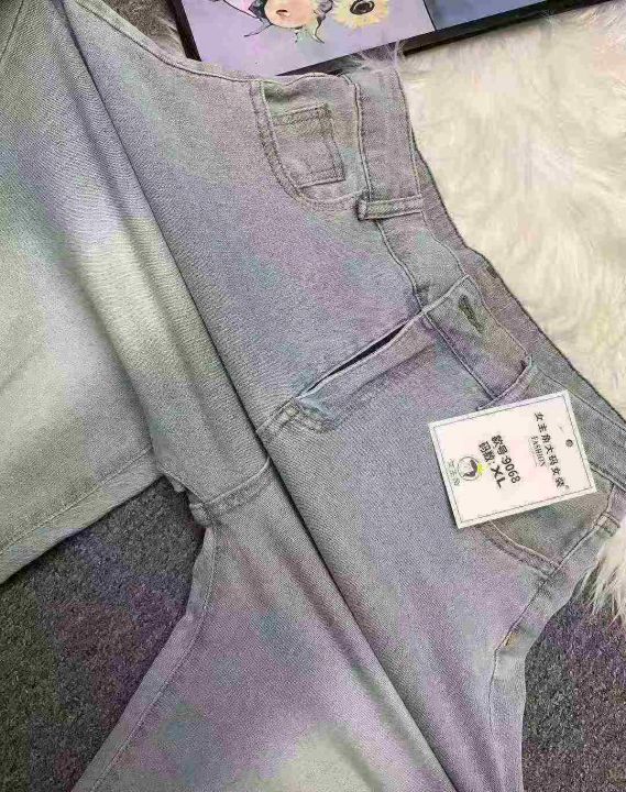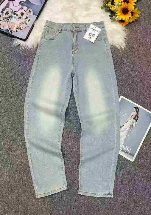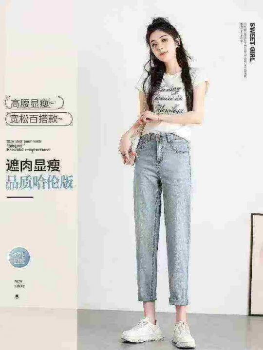 春秋新款高弹力洗水棉牛仔老爹哈伦裤,独立包装带腰卡...