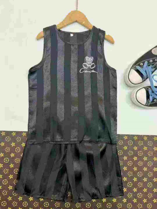 童装家居服套装,仿真丝面料,面料柔软透气凉爽,数量1765套,黑白两色,8-24码(3-13岁)独立包装吊牌,分货➕1元,模特图供参考大概款式,实物是童装!
