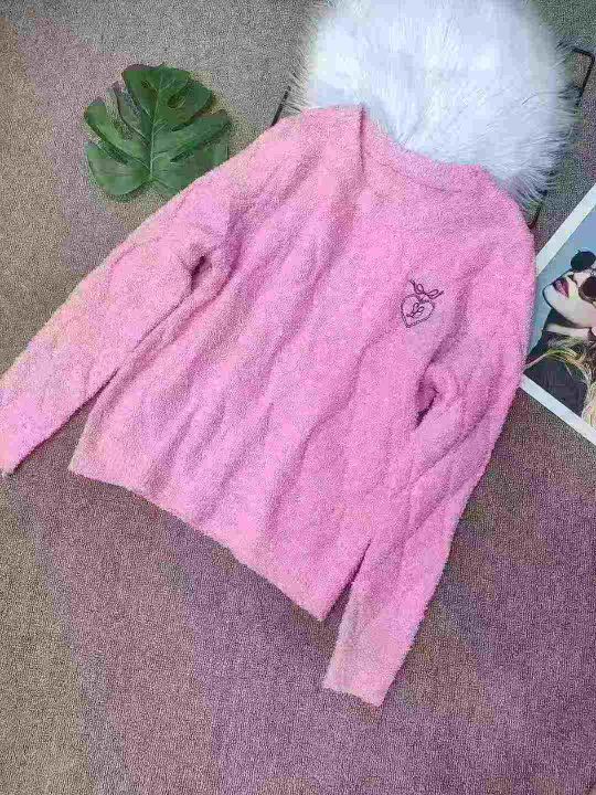 刺绣圆领套头毛衣女长袖秋冬保暖打底小颗粒绒针织衫,独立包装,均码,290件,清6.99元,分货加5毛