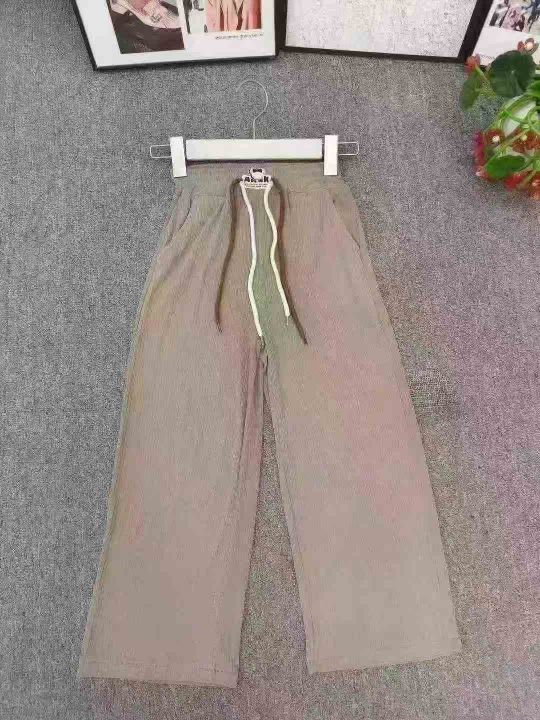 品牌洋气中大童时髦运动休闲直筒冰丝裤,数量1000件左右,尺码110--160,整款四个色(白色居多) 面料冰凉垂感足,白色带内衬防走光,内里包边,拉链包装带吊牌,全清9.8分货➕1。 货号:1323
