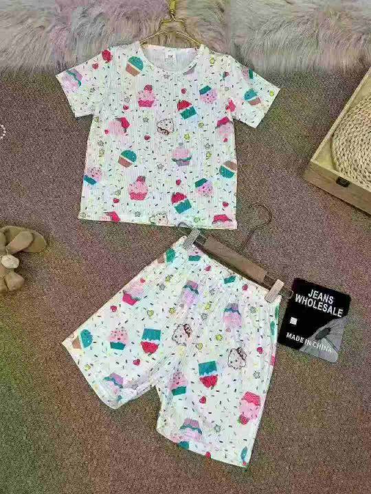 童装短袖短裤冰丝套装,数量630套,单款两个颜色,尺寸90~120码,独立拉链...