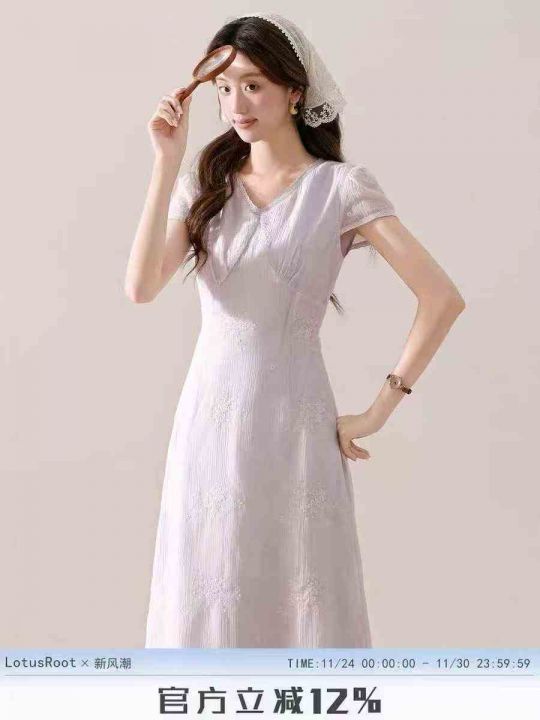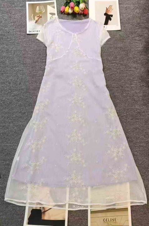 4600件高品质盛夏气质收腰显瘦修身长款连衣裙,工艺绣花,单款单色,独立包装,码数M-L。。 货号:1323