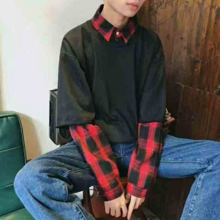 秋冬季假俩件拼接衬衫男士长袖韩版宽松,数量3400件,...